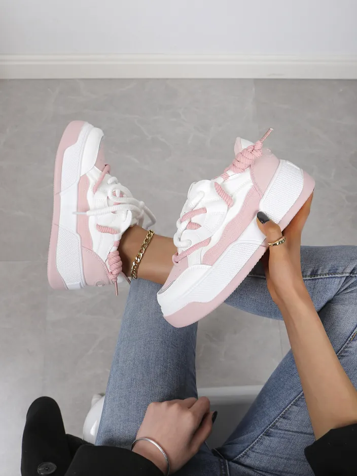 - Women's Sneakers with a thicker sole - the perfect combination of style and comfort. Footwear made of eco-leather. Laced model with a fabric insole. Ideal for active people!