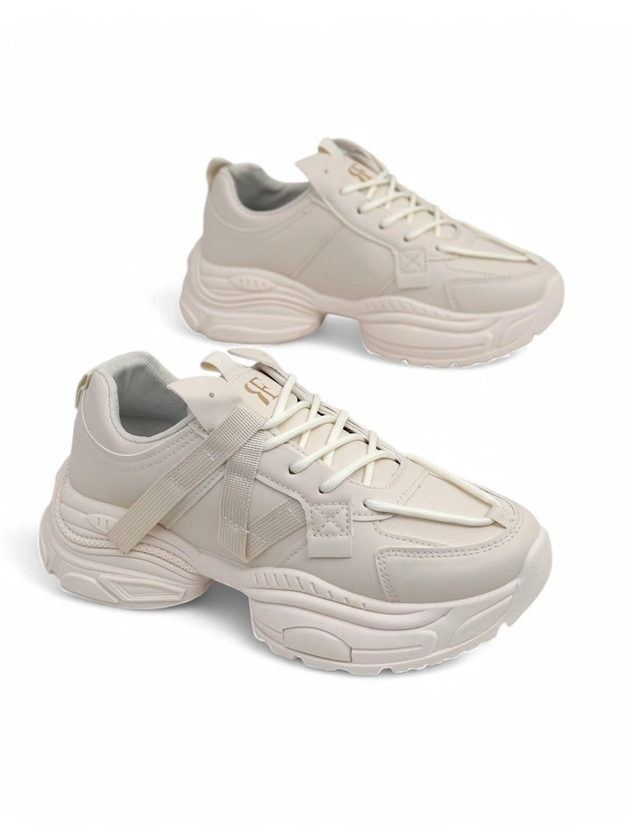 Beige Platina Roma women's sneakers are the perfect choice for spring for women who value comfort, modern design and the highest quality workmanship. The upper of the shoes is made of high-quality, certified ecological leather, guaranteeing durability, resistance to dirt and easy care. Eco leather is developed in a modern production process, without the use of harmful substances, which is confirmed by quality certificates and concern for the natural environment. The inside of the shoe is finished with a pleasant-to-touch fabric that provides comfort to the feet even during long use. A distinctive feature of the Platina Roma model is a solid, 5-centimeter sole made of flexible material, cushioning every step and taking care of a healthy body posture. The sneakers are extremely light, well-fitting thanks to classic lacing and additional straps, which ensures stability and safety. This footwear not only looks great, but also offers a number of practical advantages. The built-up construction protects the foot, prevents abrasions, and the airy interior allows the skin to breathe. The delicate beige color is universal and fits into the latest fashion trends - it matches any wardrobe and emphasizes the feminine style. ### Mixing styles - inspirations: 1. Combine Platina Roma sneakers with leggings and an oversized sweatshirt or crop top - you will create a comfortable, urban look for everyday wear. 2. Pair with fitted jeans, a white shirt and a light trench coat - perfect for work or a meeting in a cafe. 3. A flowing midi dress and a crossbody bag in pastels with these sneakers will provide comfort and subtle elegance for a walk or trip out of town. ### Care and maintenance: Clean the shoes with a damp, soft cloth; use preparations dedicated to ecological leather to remove stubborn dirt. Do not dry near a direct heat source. Store in a dry and airy place, preferably with shoe trees. ### Trends: Thick soles and pastel, neutral colors are one of the strongest trends of this spring in footwear fashion - by choosing Platina Roma sneakers, you are entering the world of global streetwear trends. A model recommended for dynamic women who value comfort, but also the style of contemporary urban elegance.