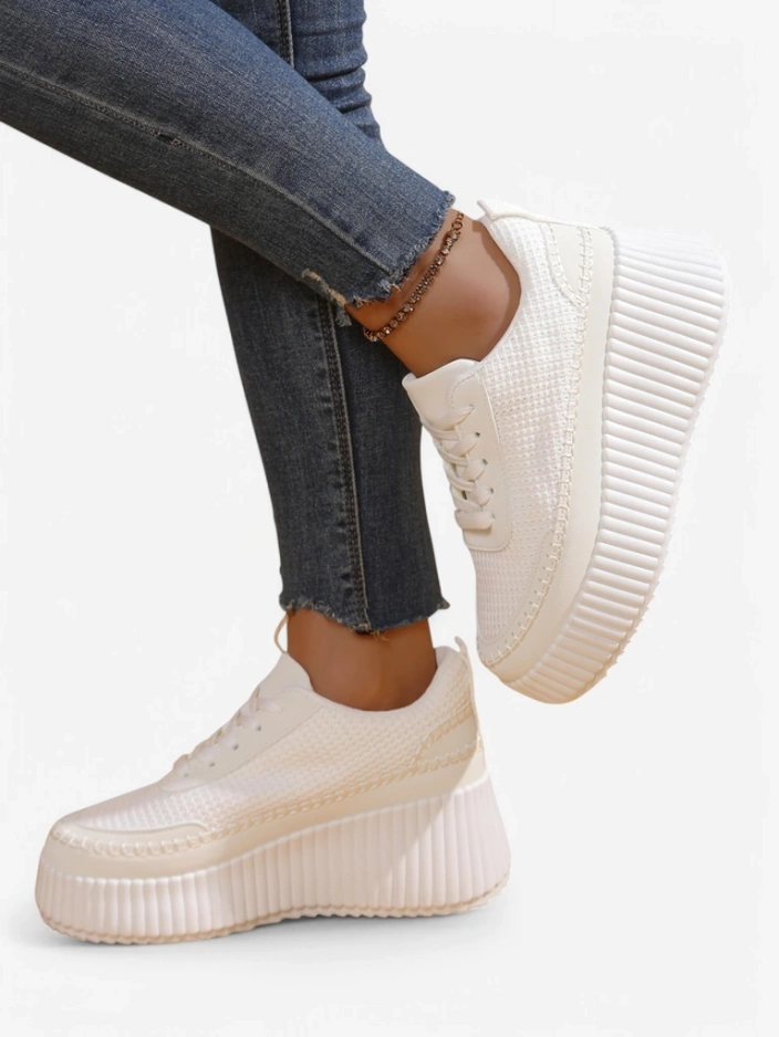 • Phenomenal women’s platform sneakers - a perfect combination of style and comfort. The shoes are made of eco-leather and fabric. Laced model, features a fabric insole. Ideal for active individuals!