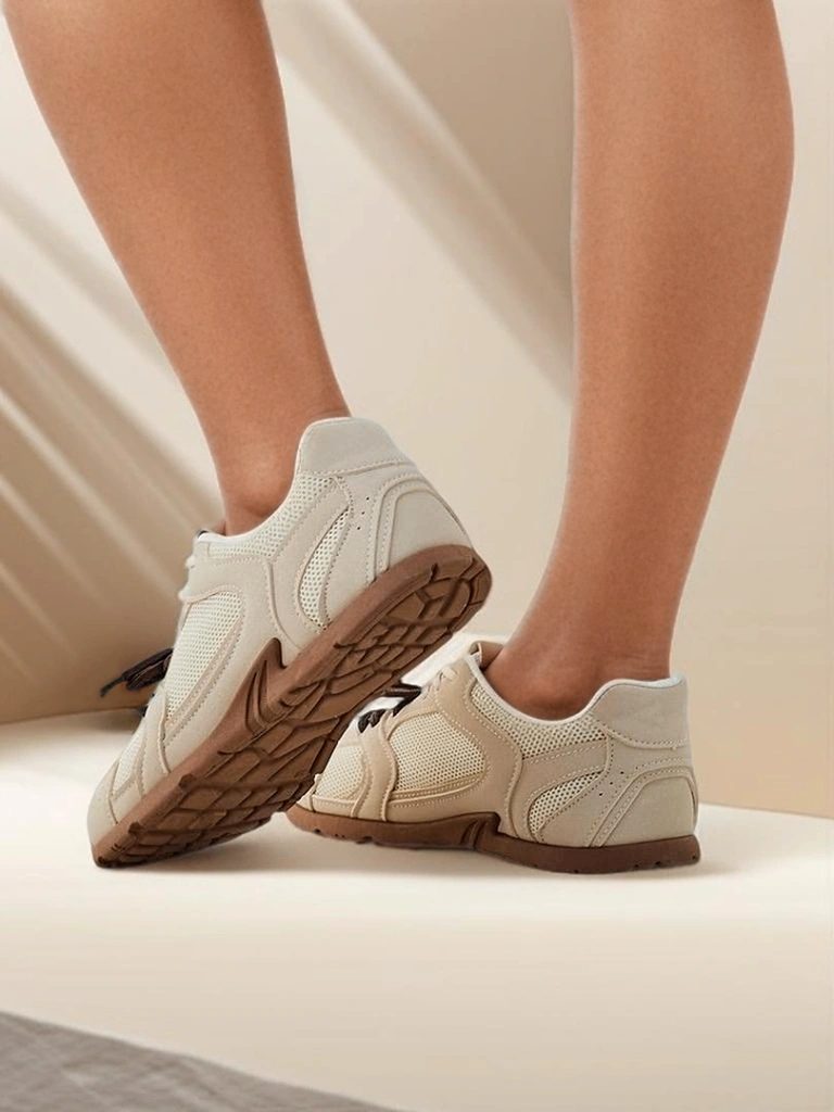 • Phenomenal women's sneakers on a flat sole - a perfect combination of style and comfort. The shoes are made of eco-suede leather and a mesh-like fabric. The model is laced and has a material insole. Perfect for active people!