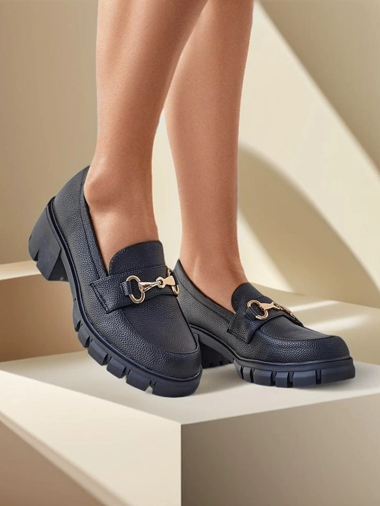 • Classic women's moccasins with a low heel. The model is entirely made of eco-leather. The footwear features a subtle decoration on the upper. An ideal base for everyday wear!
