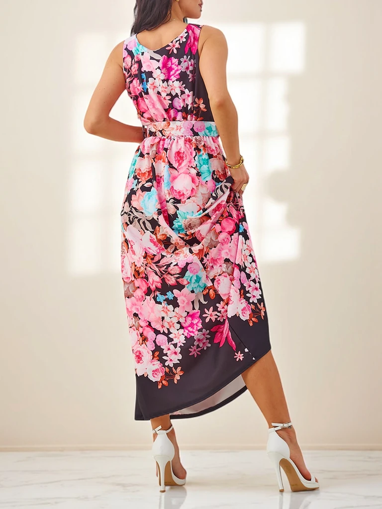 Royalfashion Women's midi dress made of viscose, with straps and a belt in various floral patterns