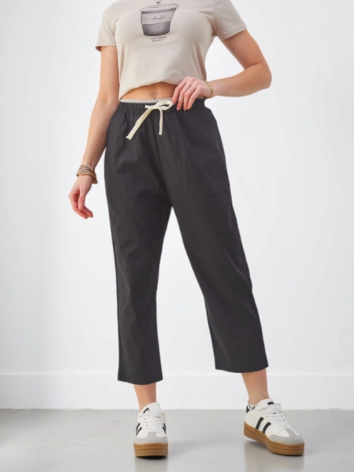 - Fantastic wide trousers made of light fabric, the model features 2 pockets, an elastic band, and drawstrings at the waist. A must-have in your wardrobe! NOTE: Measurement accuracy (+/-) 1 cm.