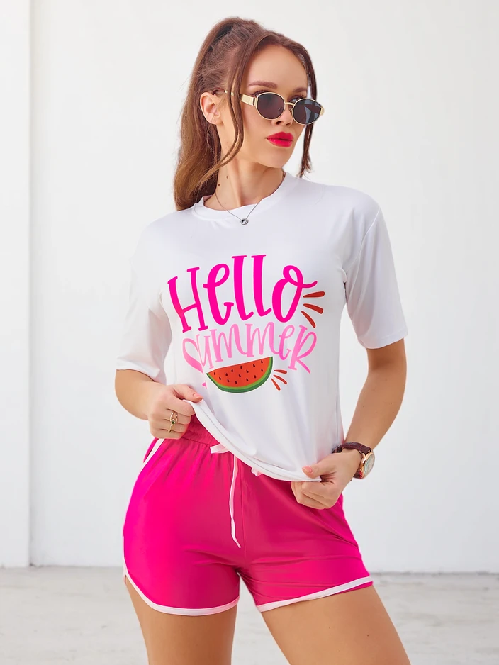 Royalfashion Women's sports set with a t-shirt and shorts Hello Summer