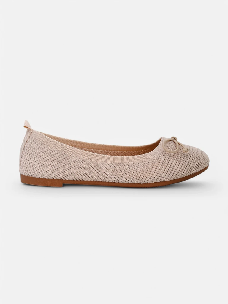 - Unique ballerinas made of fabric with a round toe. The upper is adorned with a subtle bow. A soft eco-leather insole provides comfort. They are perfect for elegant and fashionable outfits!