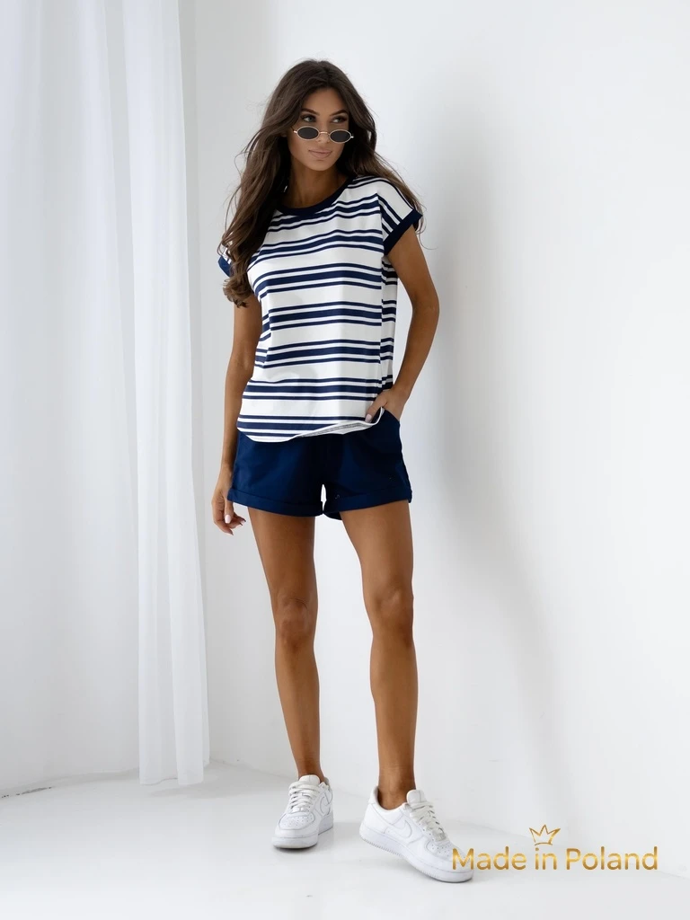Royalfashion Cotton women's set with short sleeves and striped shorts
