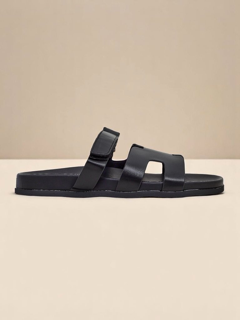 Caligari Nero men's sandals are incredibly stylish, inspired by classic Italian design and ancient comfort. They are made of high-quality, soft eco-leather, characterized by high durability, flexibility, and abrasion resistance. This leather is produced in an innovative tanning process without the use of harmful substances, as confirmed by environmental certificates. The sole is made of lightweight, anti-slip EVA material, ensuring comfort and safety even during prolonged wear. Caligari Nero sandals have wide straps and an adjustable Velcro closure, allowing them to fit perfectly to the foot, offering stability and a modern look. The insole is contoured, increasing comfort and preventing foot fatigue. The sole material allows the foot to breathe and prevents unpleasant odors. The main advantages of the product are minimalist, timeless design, ease of matching with various outfits, and exceptional comfort. The sandals are ideal for both city walks and summer trips. You can combine them with linen trousers and a shirt for a smart casual meeting, with shorts and a basic T-shirt for a daily walk, and with chinos and a polo shirt to create a fashionable outfit for a summer party or evening outing. To keep the footwear in perfect condition, it is recommended to wipe them with a damp cloth and mild detergent, avoid prolonged contact with water, and store them in a dry, airy place. The sandals do not require complicated care, and their durability has been further enhanced by high-quality stitching and materials used. Currently, minimalist sandals with a simple design, referring in design to classic Greece and Italy, are one of the key trends of the season. They combine functionality, comfort, and subtle elegance, being a must-have wardrobe item for all fashion and comfort lovers.