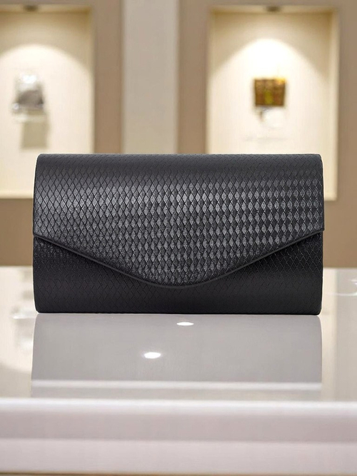 - Envelope handbag made of eco-leather, covered with fabric with shimmering thread and subtle embossing. Fastened with a magnet, with a detachable strap – elegance in a shiny version.