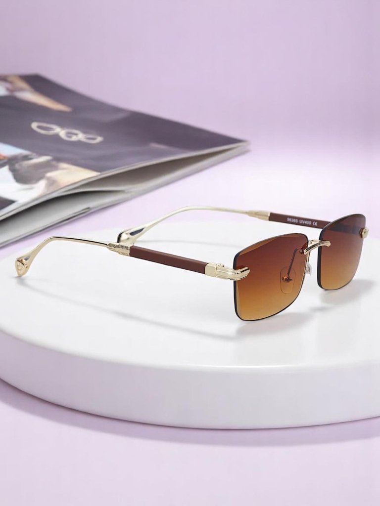 - Small, narrow sunglasses with a rectangular shape and metal frame. Vintage style in a modern edition – perfect for fans of bold retro accessories.
