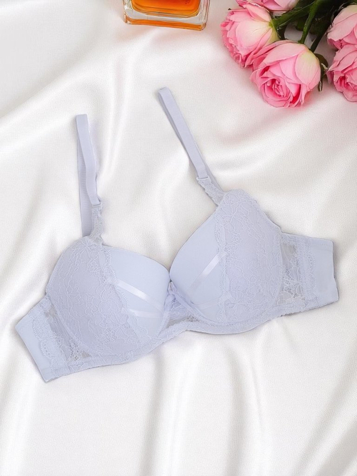 - Excellent padded bra. The model fastens at the back, has adjustable, detachable straps, and additionally features a decorative pattern between the cups.