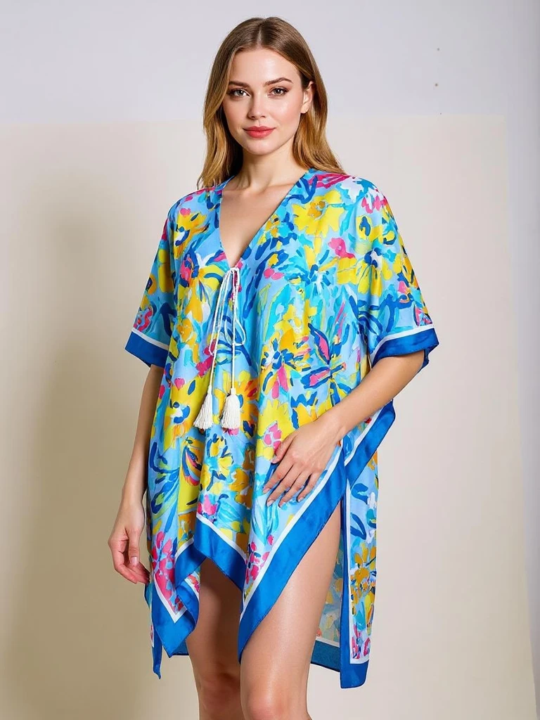 - This summer beach tunic pareo with a V-neck and asymmetrical hem is a stylish must-have for your vacation. The airy, lightweight fabric and eye-catching design accentuate femininity, while the loose fit ensures comfort on hot days. Perfect for the beach a