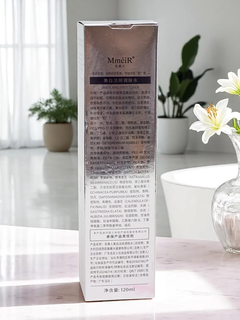 - The brightening facial toner effectively reduces discoloration, evens out skin tone, and restores a radiant appearance to the complexion. The formula with active ingredients moisturizes, smooths, and prepares the skin for further care. Ideal for skin with
