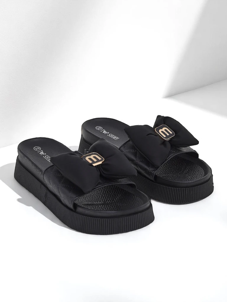 - Women's flip-flops on a light, rubber platform, perfect for summer days. The eco-leather strap decorated with a charming bow adds a girlish charm. Comfortable, stylish, and feminine - a great choice for everyday outings and vacation relaxation.