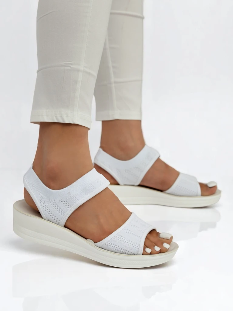 Sandalie Luminosa to eleganckie i ultralekkie sandały na platformie, które łączą w sobie ponadczasową klasykę i nowoczesną technologię produkcji. Cholewka wykonana została z wysokiej jakości, przewiewnej dzianiny poliestrowej, która jest nie tylko odporna na rozciąganie i deformacje, ale także zapewnia niezrównaną wentylację stóp nawet w najcieplejsze dni. Platformowa podeszwa z pianki EVA gwarantuje lekkość oraz doskonałą amortyzację – Twoje kroki będą miękkie i pewne przez cały dzień. Wszystkie materiały zostały dobrane z troską o Twoje zdrowie i komfort, spełniając standardy certyfikatów OEKO-TEX®.Sandały nie zawierają substancji szkodliwych i są bezpieczne nawet dla wrażliwej skóry. Projekt wyróżnia się minimalistycznym wzornictwem oraz szerokim paskiem na rzep, który pozwala łatwo dopasować but do kształtu stopy. Wyściółka wykonana jest z miękkiego, hipoalergicznego materiału syntetycznego, delikatnego w dotyku, który zapobiega powstawaniu otarć.Najważniejsze zalety Sandalie Luminosa to lekkość, przewiewność i niezwykle łatwa pielęgnacja. Tworzą niepowtarzalne uczucie świeżości podczas upalnych dni, a anatomiczny kształt podeszwy wspiera komfort podczas długich spacerów.Inspiracje stylizacyjne:1. Casualowy look: Zestaw sandały z białymi lnianymi spodniami i pastelowym topem – idealny wybór na spacer po mieście czy zakupy.2. Letnia elegancja: Połącz sandały z lekką, zwiewną sukienką midi oraz dużą torbą typu shopper na spotkanie w kawiarni.3. Sportowy vibe: Noś do krótkich szortów i oversize’u t-shirtu – stylizacja na wakacyjny wyjazd lub aktywny dzień na świeżym powietrzu.Instrukcja pielęgnacji: Sandały czyścić delikatnie wilgotną szmatką z dodatkiem łagodnego mydła, unikać prania w pralce. Suszyć z dala od źródeł ciepła, aby zachować elastyczność materiału. Przechowywać w suchym miejscu, najlepiej w oryginalnym pudełku.Trendy: Jasna gama beżów i bieli oraz ażurowa faktura są obecnie bardzo modnym elementem letniego obuwia. Platforma zapewnia dodatkowy komfort i idealnie wpisuje się w miejski, lekki styl codzienny.