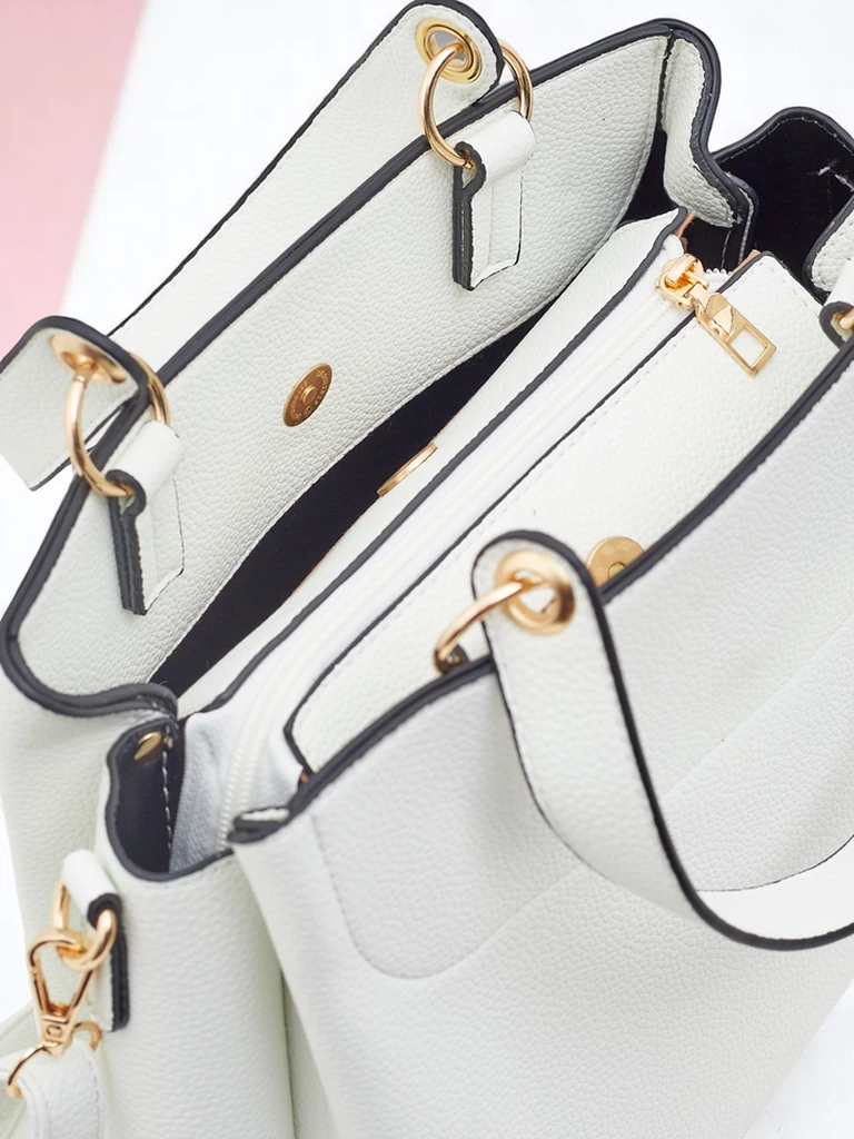 - A large handbag made of eco leather with one spacious compartment and two small pockets for small items. Equipped with an adjustable, detachable strap – you can carry it on your shoulder or in your hand. Stylish, practical, and perfect for everyday use as