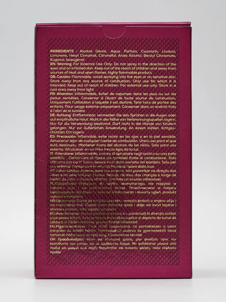 - Distinctive and sensual perfume that opens with notes of bitter almond, liqueur, and juicy cherry. At its heart, accords of plum, rose, and jasmine blossom, evolving into a deep, spicy base with vanilla, tonka bean, wood, and spices.
