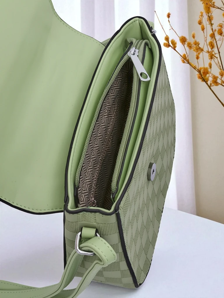 - Small women's handbag made of eco leather with a fashionable check pattern. Zipper closure, adjustable strap, and one compartment provide convenience and style for everyday use. Perfect for a phone, wallet, and small items.