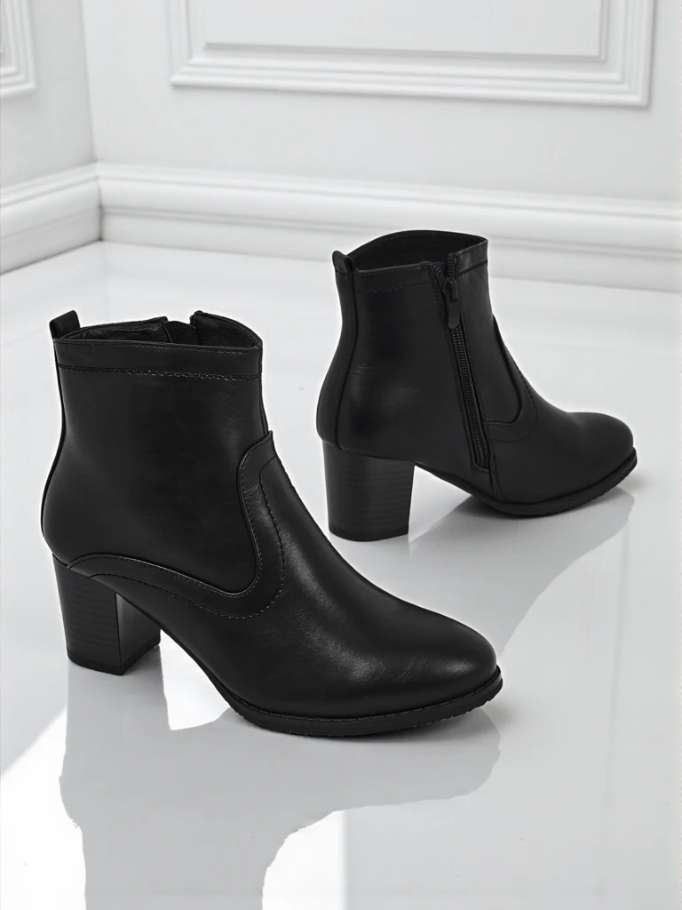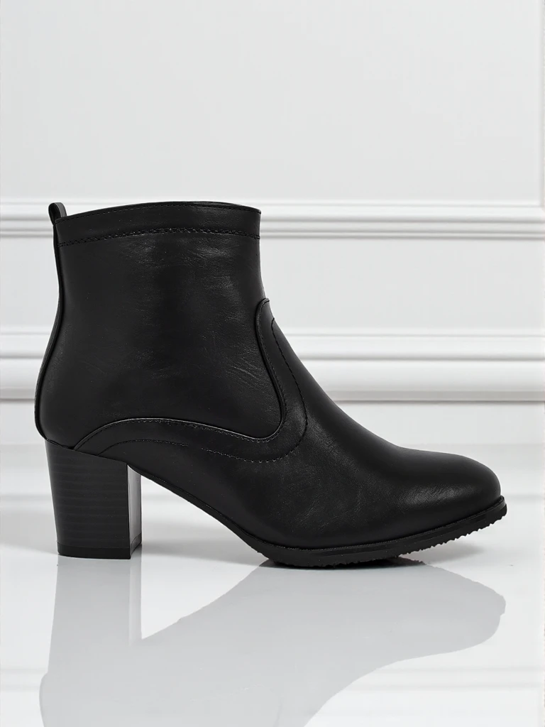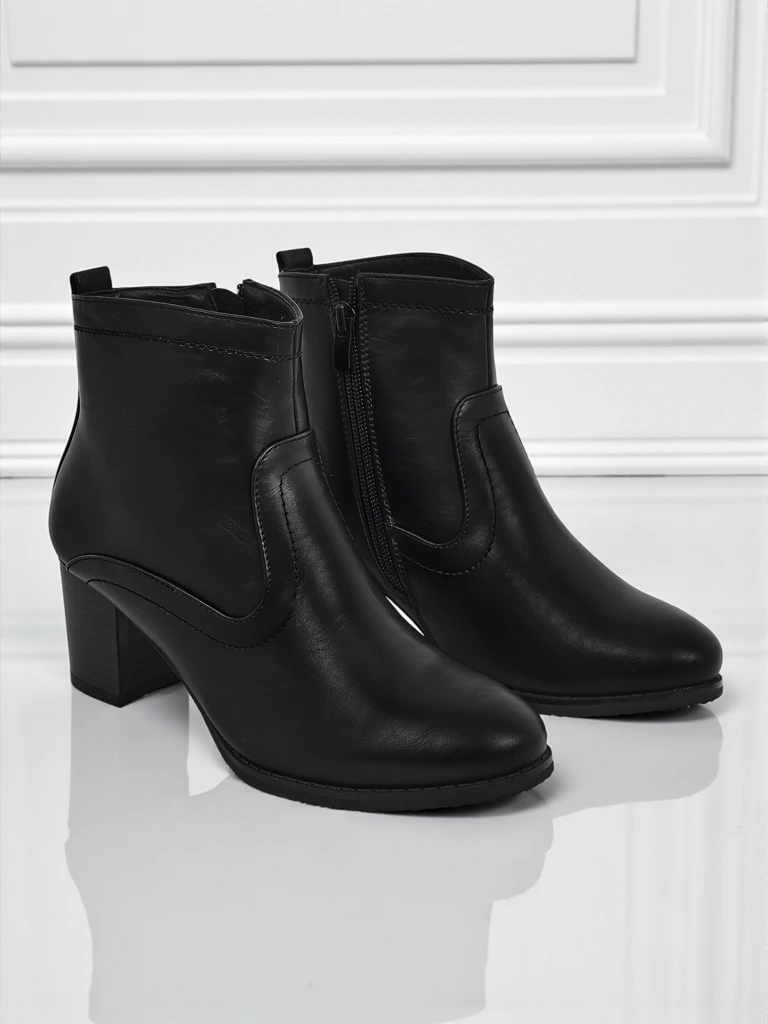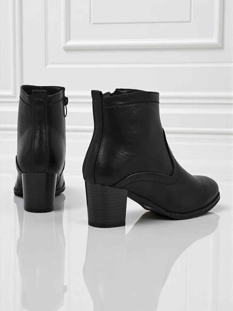 • Fantastic women's heeled ankle boots, made of eco-leather. The interior is made of soft fur. The model fastens with a zipper. Perfect for autumn outfits!