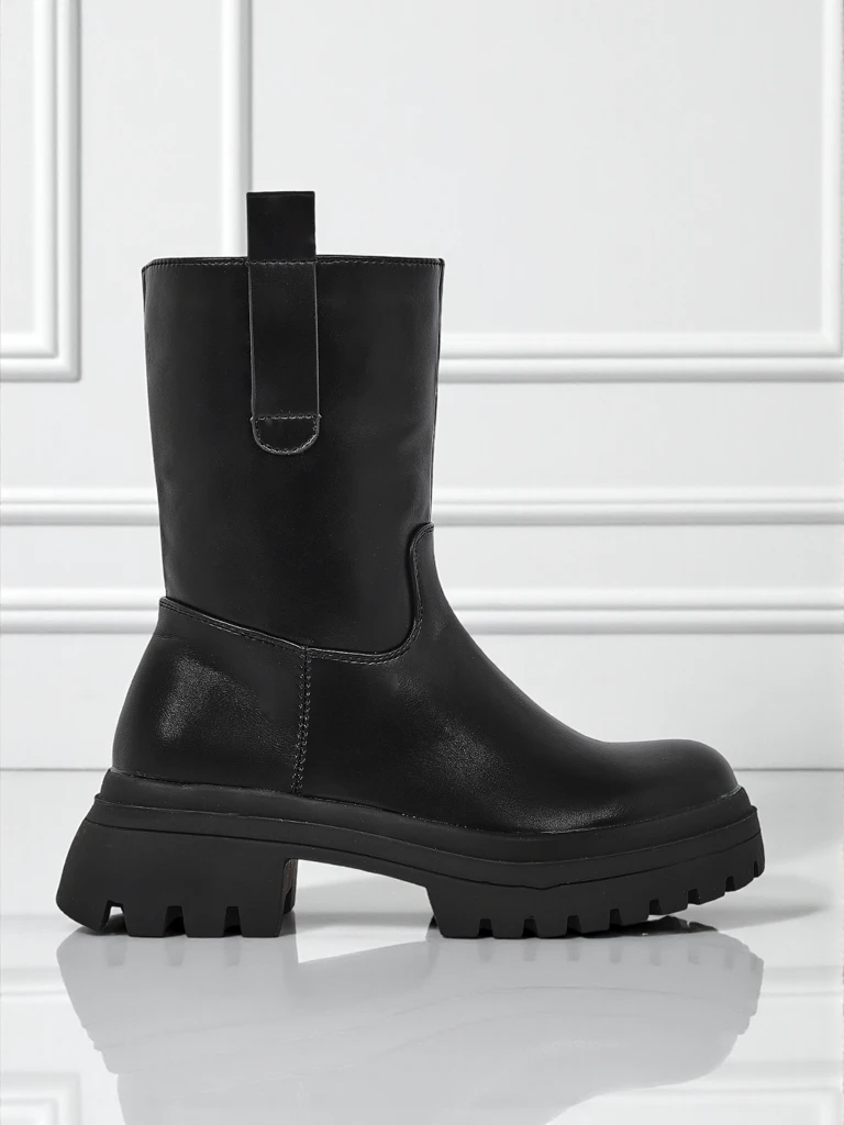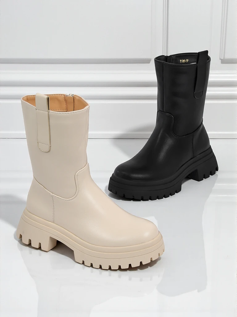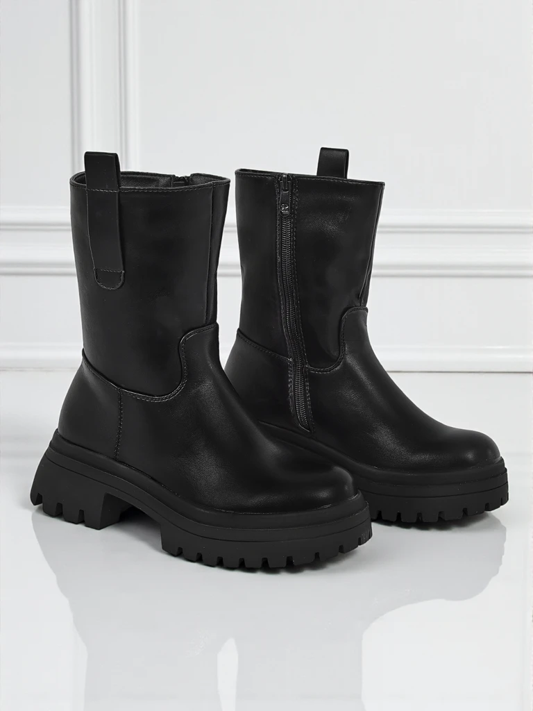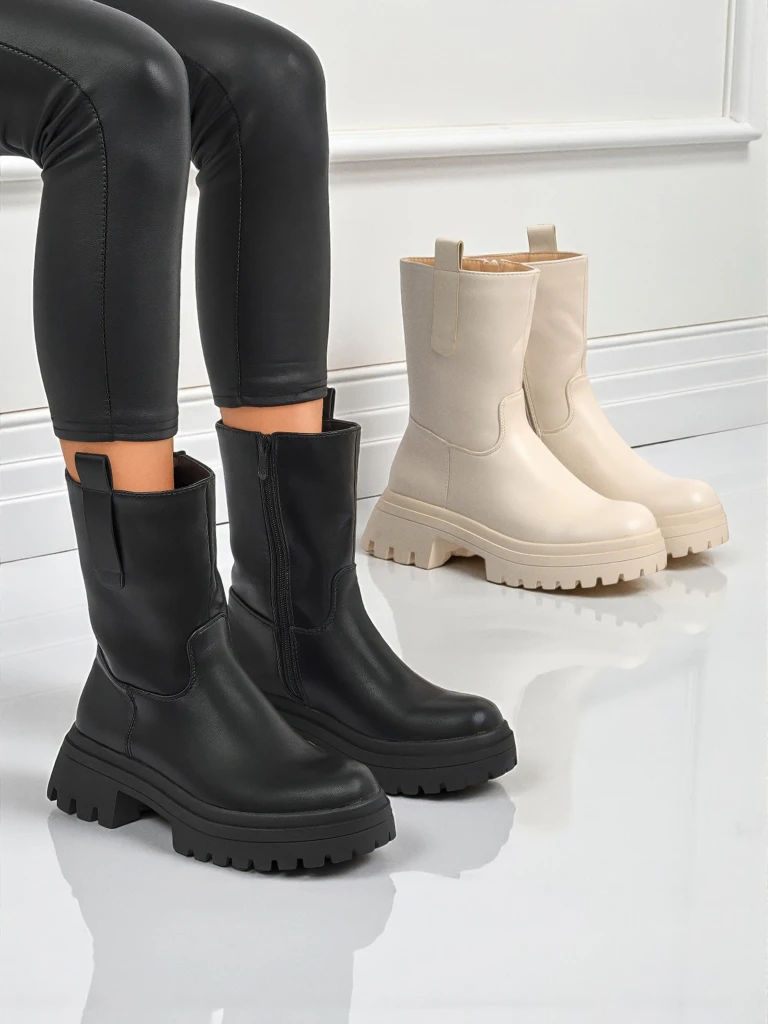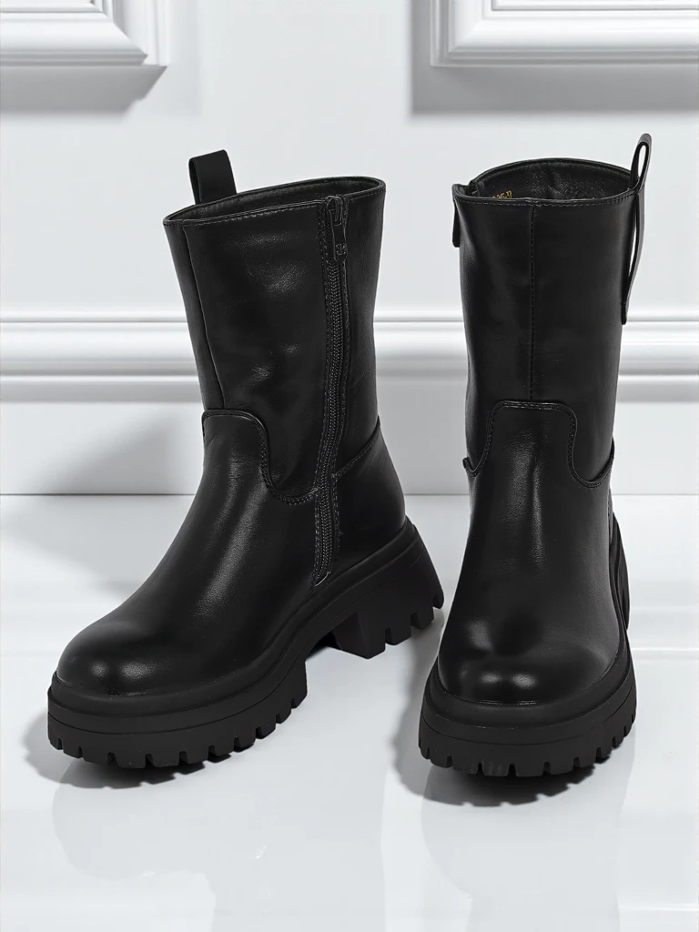 • Eco-leather women's ankle boots with a zipper closure. Model with a thicker sole. Comfortable and stylish, perfect for autumn!