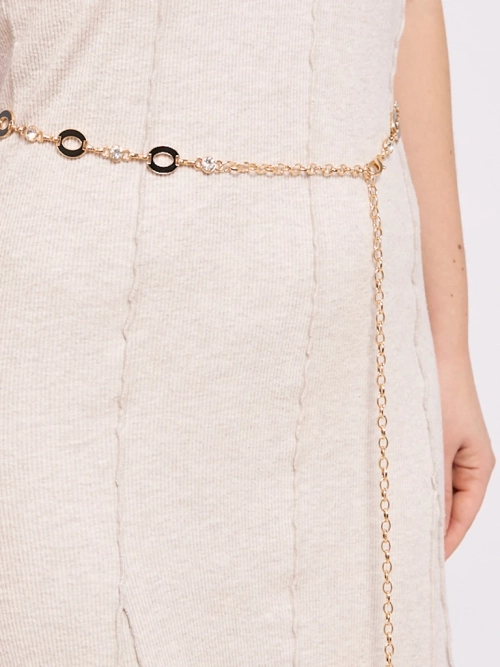 - Trendy women's chain belt, made of metal and fastened with a 1 cm wide hook. It will be an attractive addition to many evening outfits.