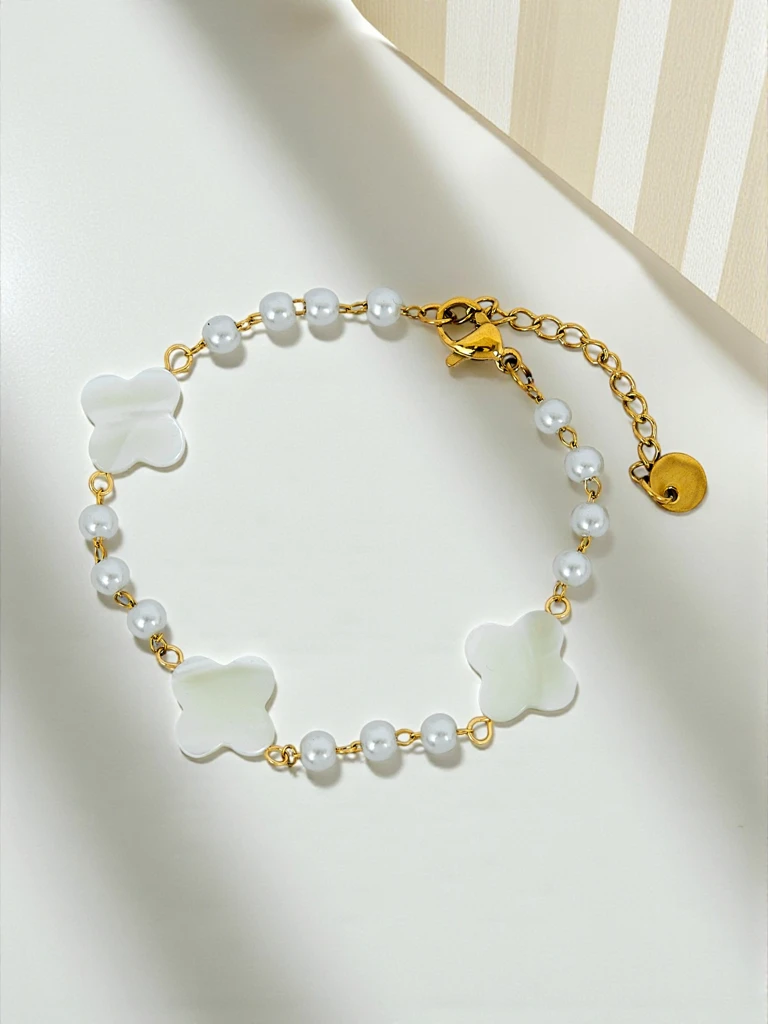 Aurelia Bianca bracelet with white pearl flowers, gold-plated