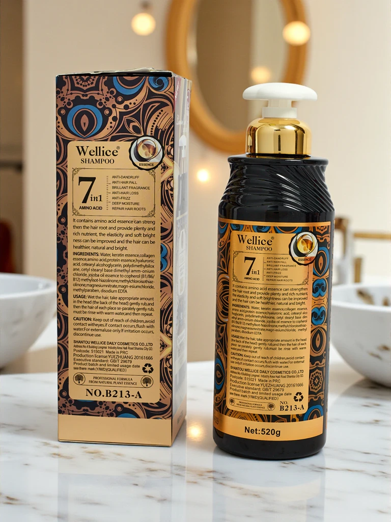 - Wellice 7-in-1 shampoo for damaged and dry hair with amino acids intensively rebuilds, moisturizes and strengthens hair. Reduces breakage, adds shine, smoothes and facilitates combing, leaving hair soft and healthy.