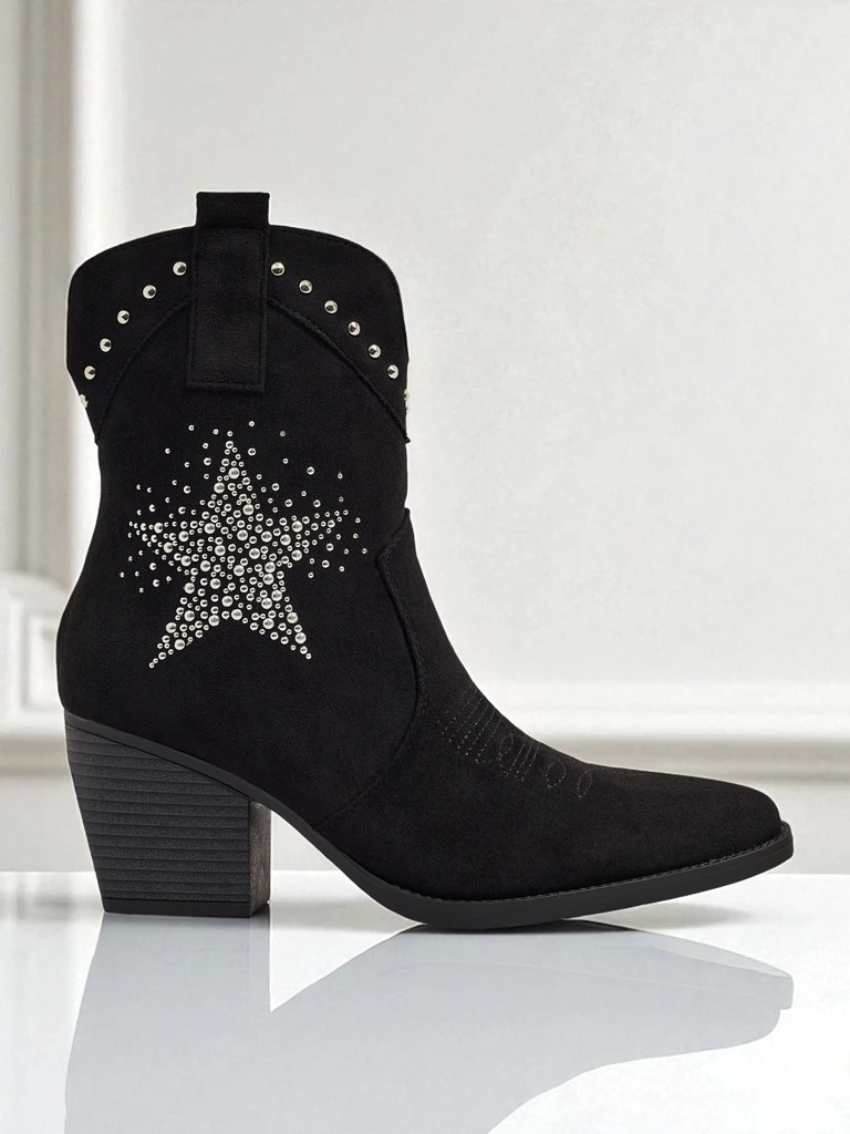 Women's Cowboy Boots with Heel and Decorative Rhinestone Star FableStray