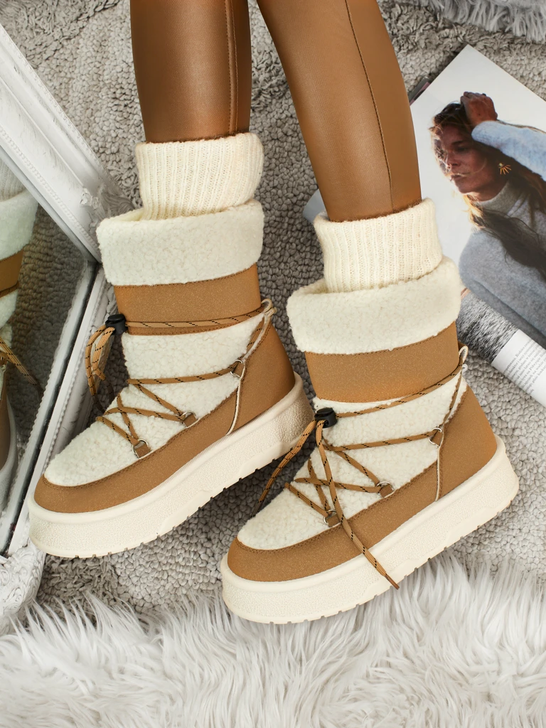 - Great women's winter snow boots with a thick sole. The upper is made of ecological nubuck leather and a fur-like material, the inside is insulated with fur. The perfect base for winter!