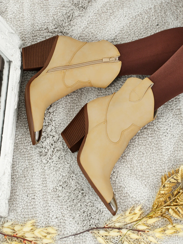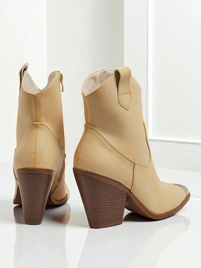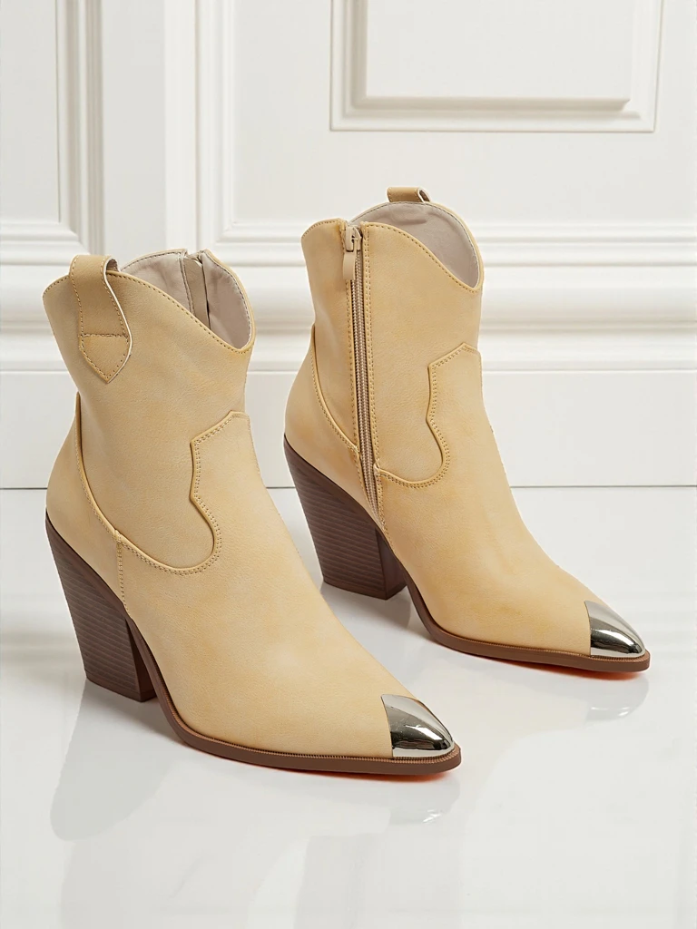 - Heeled cowboy boots made of ecological leather. Fabric insole, zip fastening with a decorative toe. They match many women's styles!