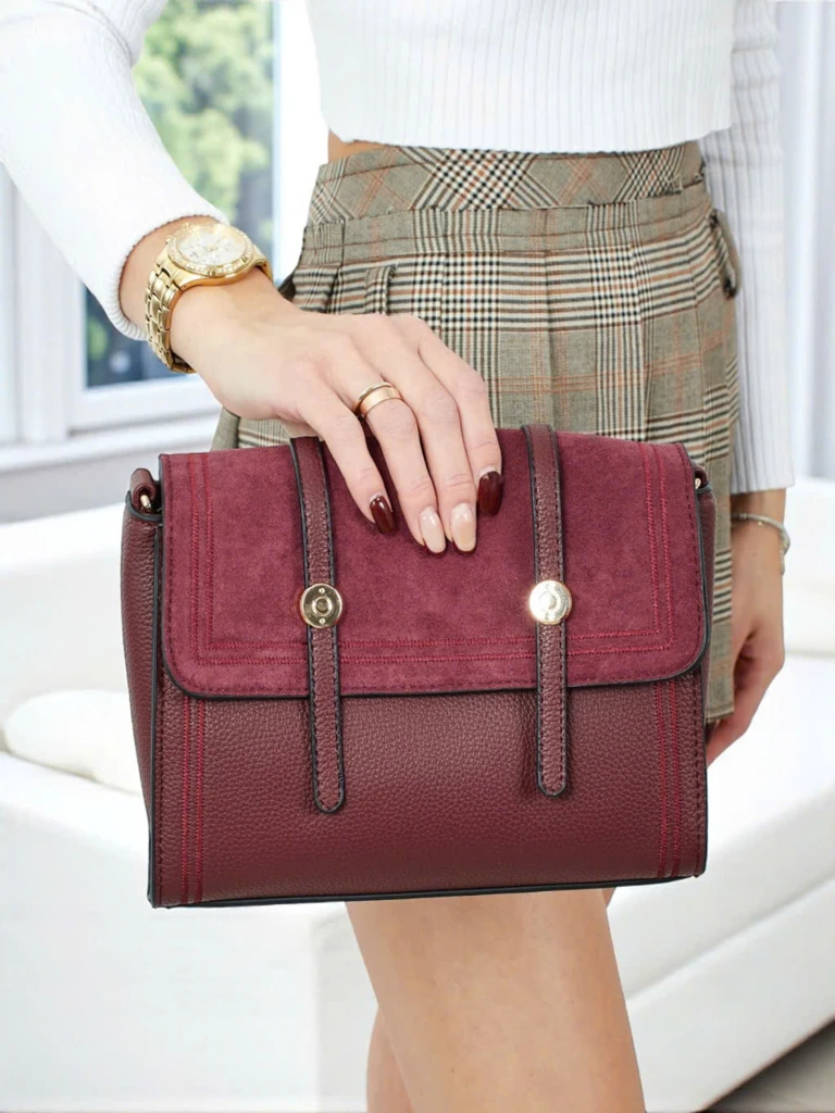 - Small handbag made of a combination of eco-leather and eco-suede. 1 compartment, 2 pockets, zipper closure, and a detachable, adjustable strap. Style and functionality in perfect harmony.