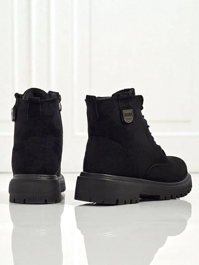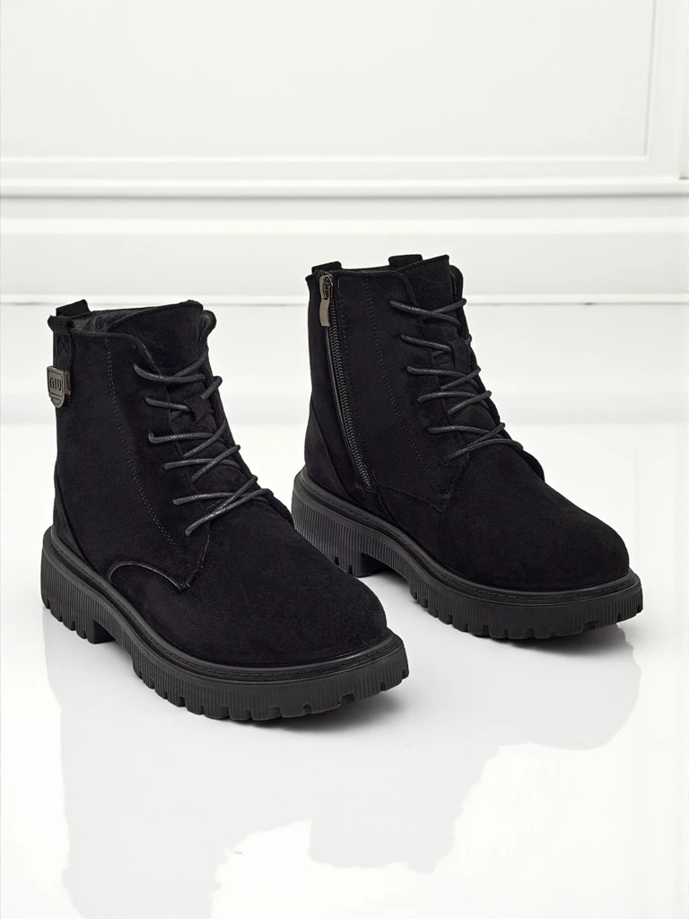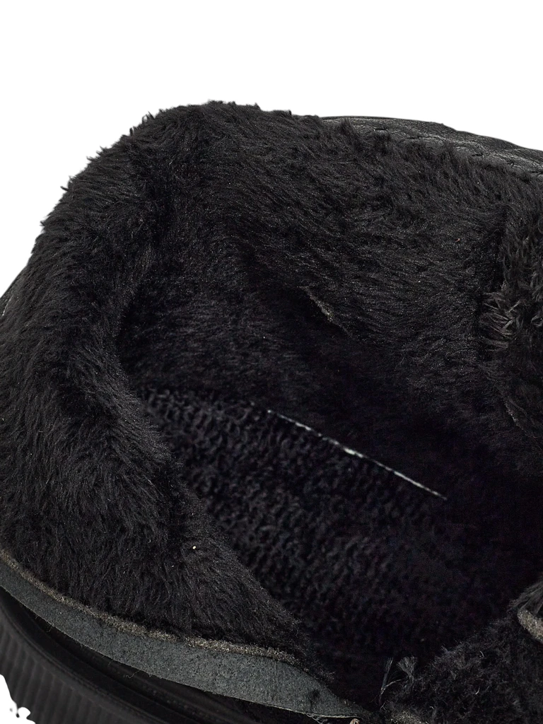 - Women's trekking boots with a lace-up upper and a side zipper. The material is ecological suede leather. The inside of the boots is insulated with fur. Perfect for winter!