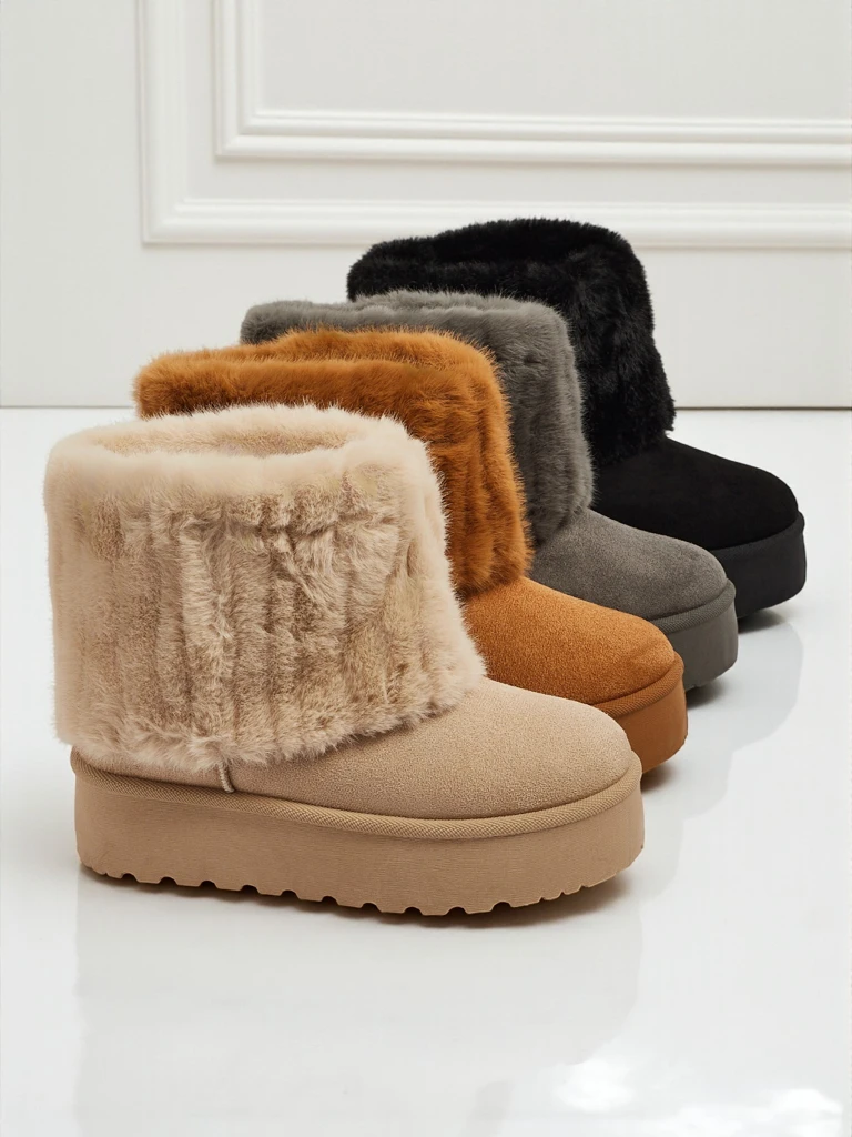 • Great women's winter snow boots with a thick platform sole. The upper is made of ecological suede leather, the inside is insulated with fur. The perfect base for winter!