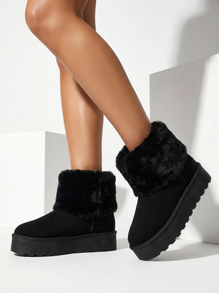 • Great women's winter snow boots with a thick platform sole. The upper is made of ecological suede leather, the inside is insulated with fur. The perfect base for winter!