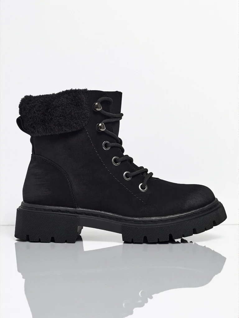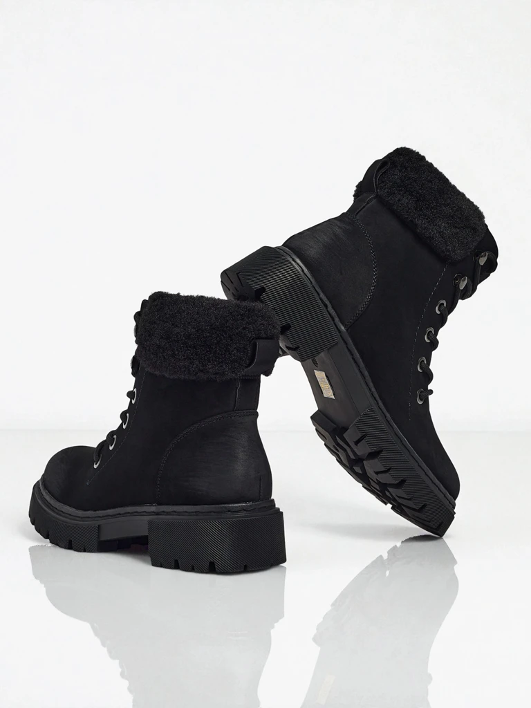 - Women's trekking boots with a lace-up upper. The material is ecological suede leather. Insulated with a delicate fur lining inside. Perfect for winter!