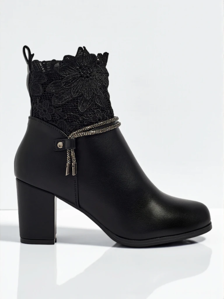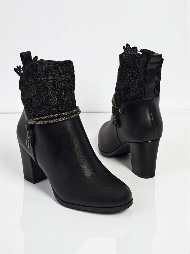 Luna ankle boots are an excellent choice for women who value elegance and comfort. Created for everyday wear, they are perfect for various occasions, from evening outings to formal meetings. Their classic black color and attractive finish with lace detail make them extremely stylish.