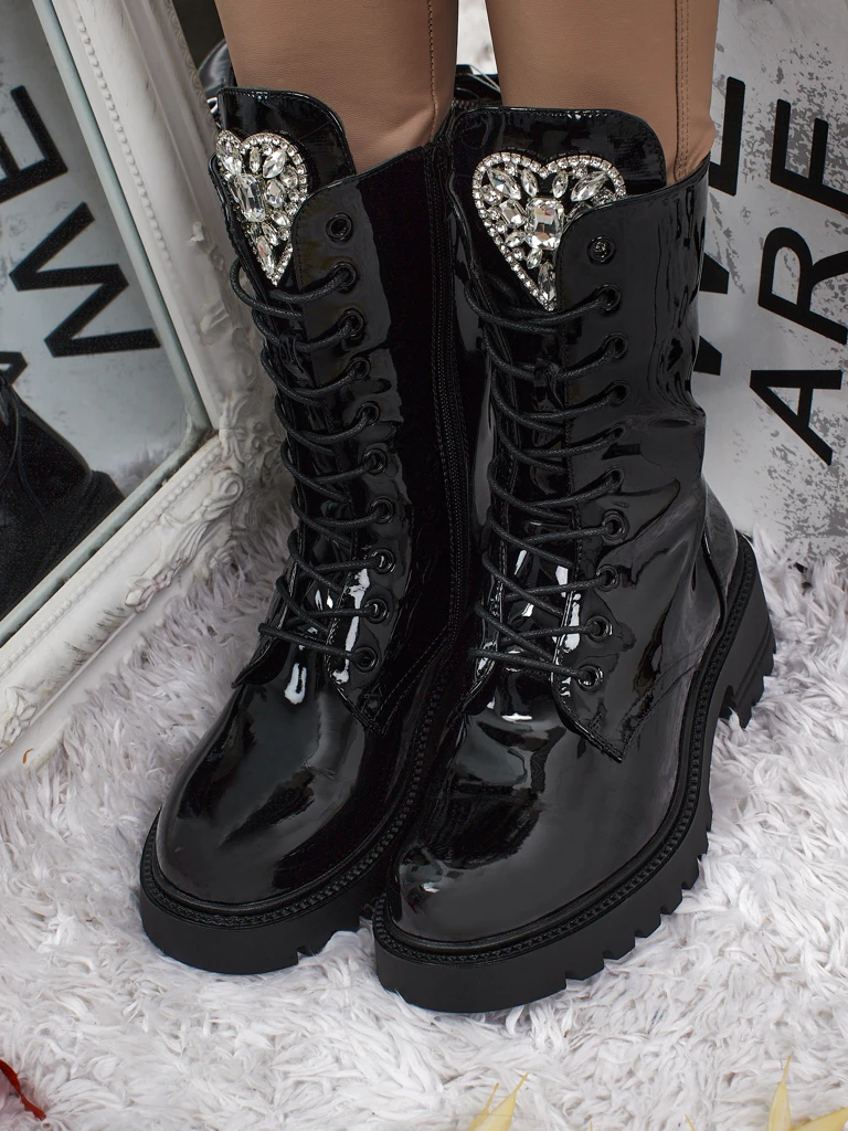 These ankle boots are made of high-quality materials, which ensures their durability and aesthetic appearance. The inner lining and solid sole guarantee comfortable use. Attention to detail, including a heart-shaped decorative element, gives them a unique character, ideal for women who value style and elegance.