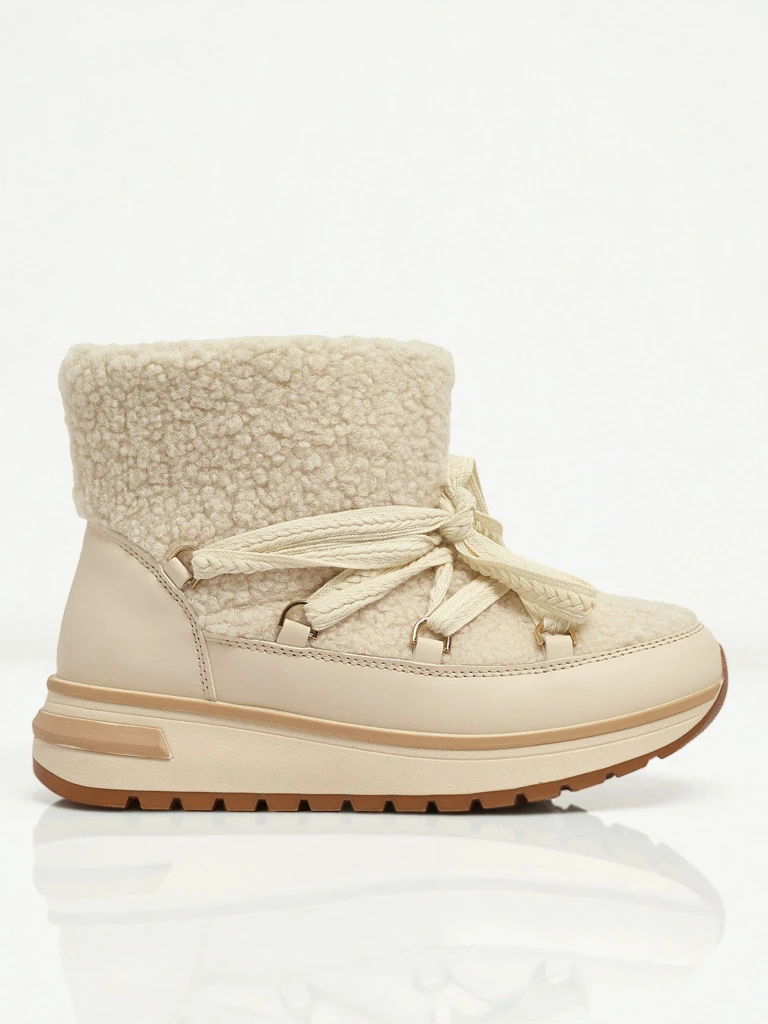 - Great women's winter snow boots with a thick sole. The upper is made of ecological suede leather, the inside is insulated with fur. The perfect base for winter!