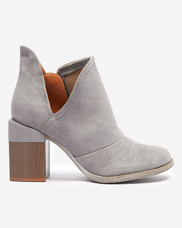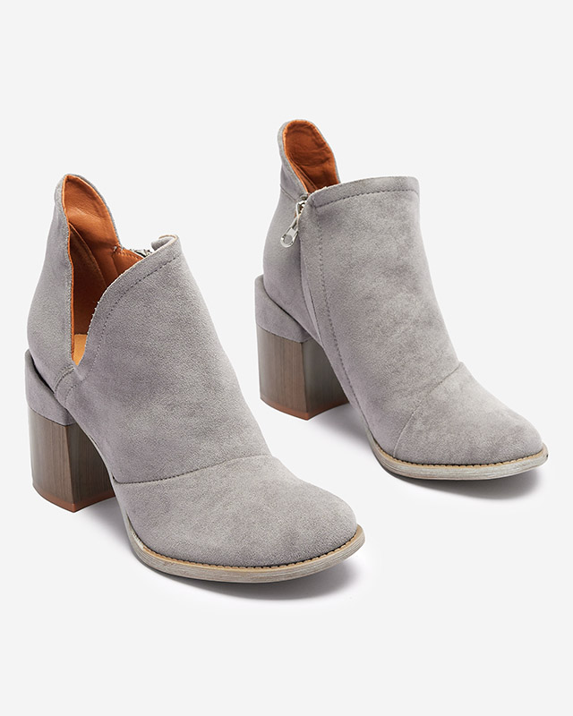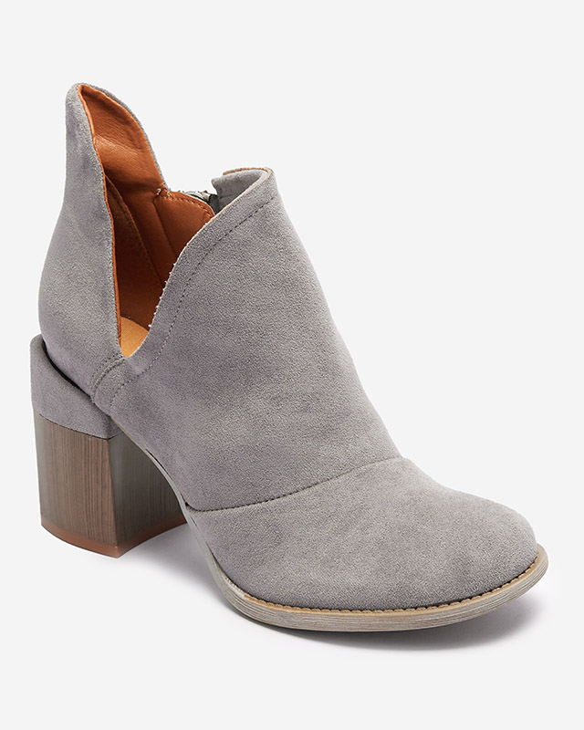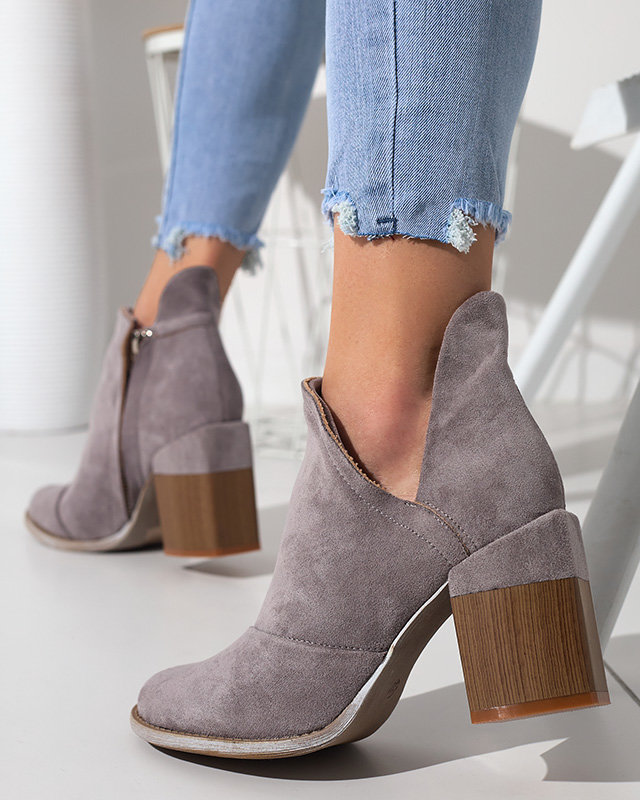 Szare damskie botki na słupku z wycięciami Cintura - Obuwie