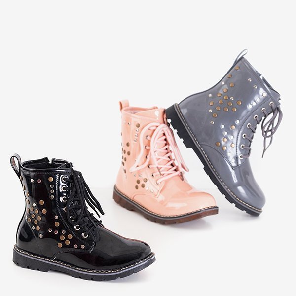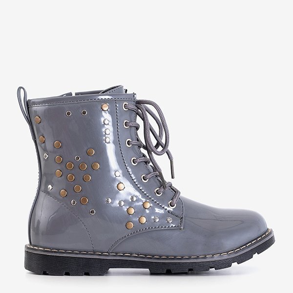Szare dziecięce lakierowane workery Isibeal - Obuwie