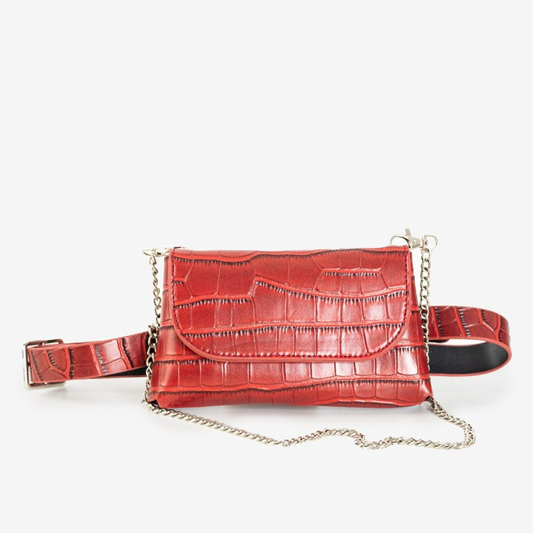 - Najmodniejsza w tym roku torebka do ręki, wykonana z eko-skóry. Zdobiona marszczeniami i zwierzęcym motywem. Torebkę można nosić na sznureczku bądź łańcuszku. Zapinana na metalową blaszkę zatrzaskową - otwiera się poprzez wciśnięcie końców do siebie.