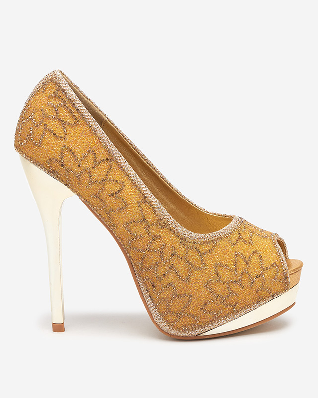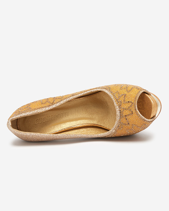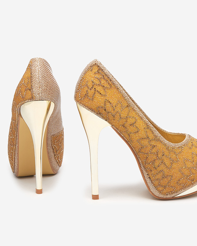 Kuldsed naiste brokaatpumbad tsirkooniumoksiidiga Vida - Jalatsid