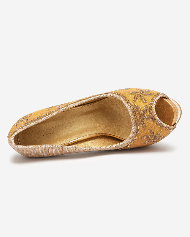 Kuldbrokaadist naiste kõrged kontsad tsirkooniumoksiidiga Yilla - Jalatsid