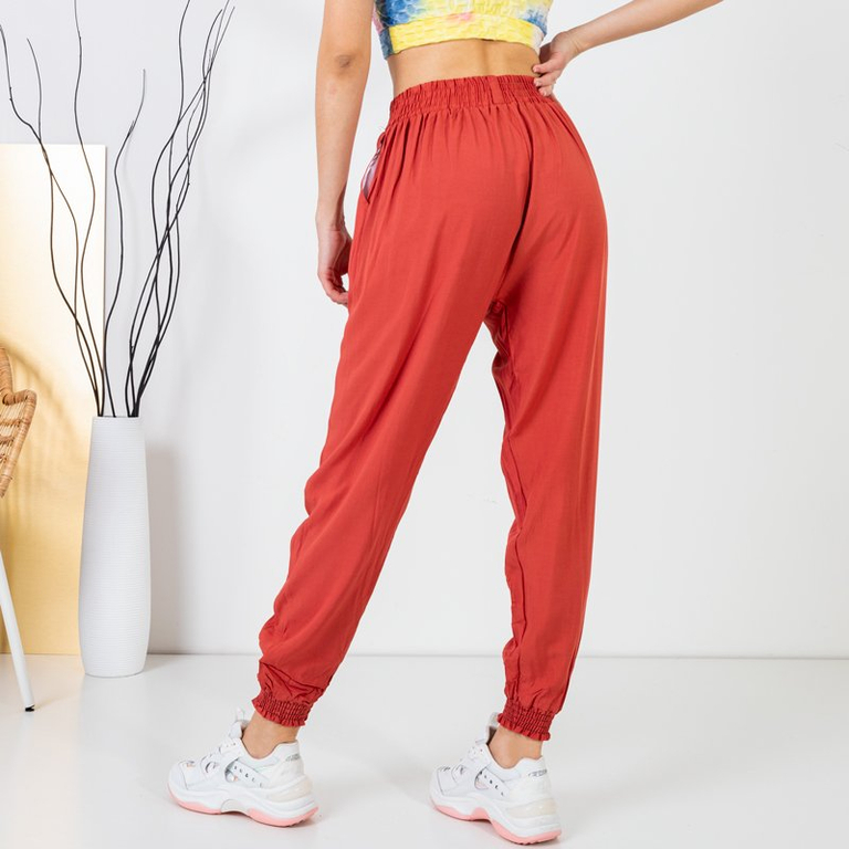 • Kergest riidest naiste haaremipüksid, valmistatud puuvillasest kangast. Mudelil on elastne vöökoht ja sääred, ees - kaks liistutaskut. Need tagavad täieliku mugavuse ja liikumisvabaduse. MÄRKUS: mõõtmistäpsus (+/-) 1 cm.
