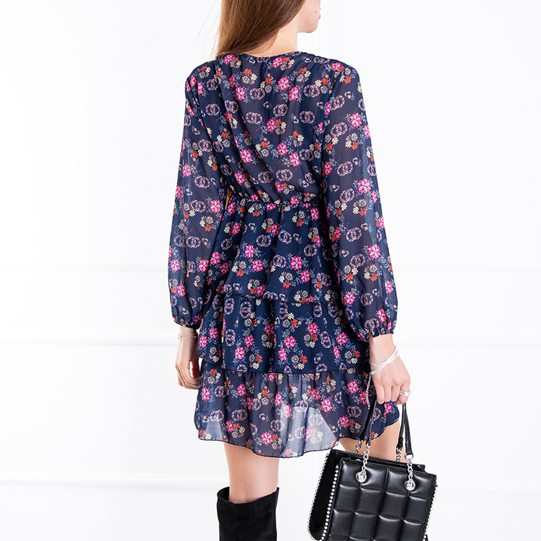 - Naiste kleit üle põlve, pikkade varrukate ja volangidega. V-kaelus ning ilus ja moekas lilleprint. Suurepärane valik igapäevaseks kasutamiseks või tööle! MÄRKUS: Mõõtmistäpsus (+/-) 1 cm.