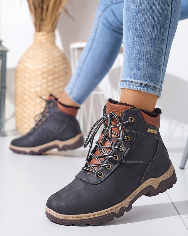 Poritsu karusnahaga seotud mustad naiste matkasaapad - Jalatsid