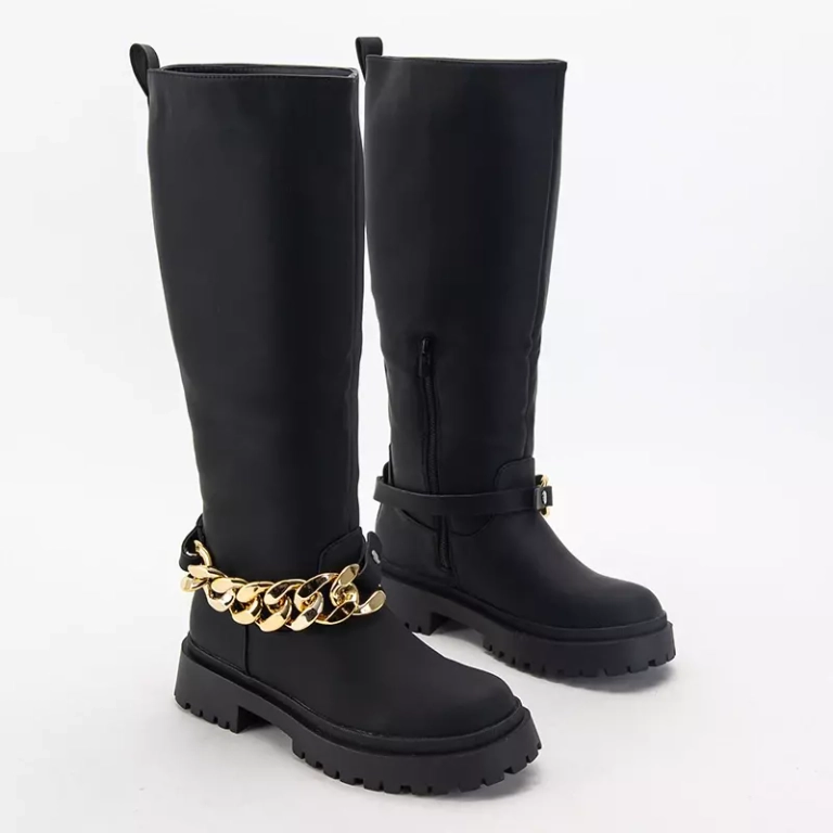OUTLET Naiste mustad põlvini ulatuvad saapad Filusio - Jalatsid