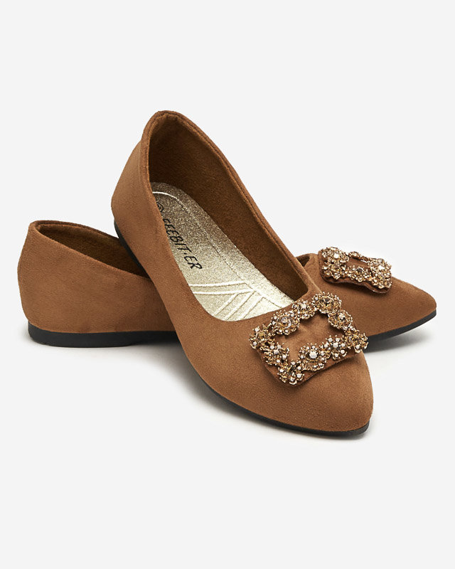 Pruunid naiste öko-seemisnahast baleriinad Linselisa ornamentiga - Jalatsid