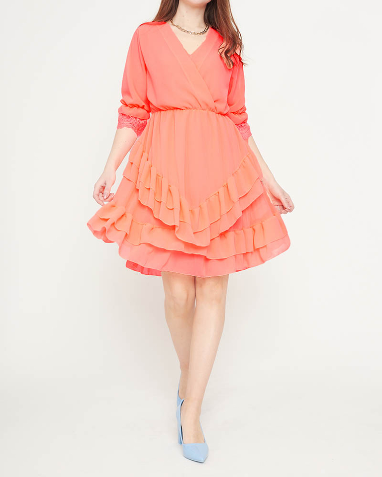 - Fantastiline naiste minikleit, millel on magus süda-kaelus, 3/4 varrukatega, mis on pitsiga kaunistatud. See kerge suvekleit on kaunistatud rüüsidega, sellel on vooder ja sisseõmmeldud elastne vöökoht. MÄRKUS: mõõtmistäpsus (+/-) 1 cm.