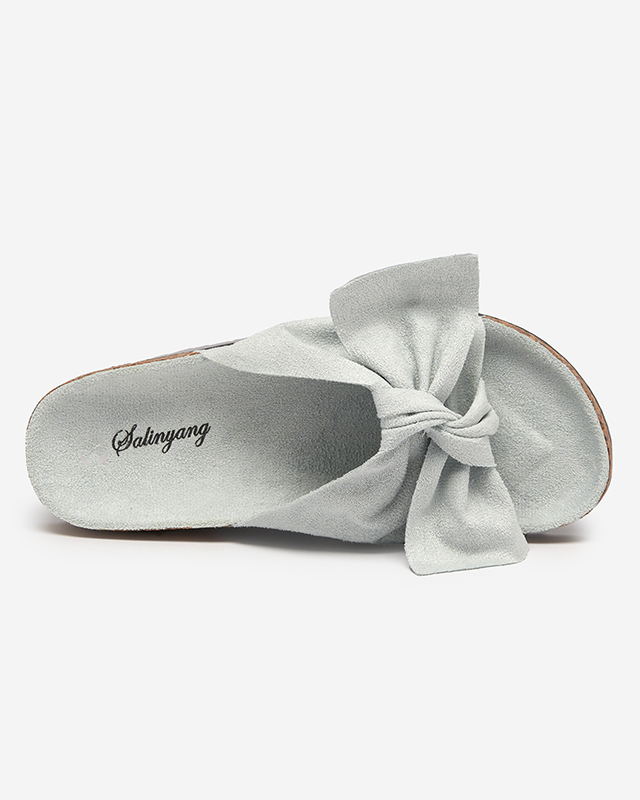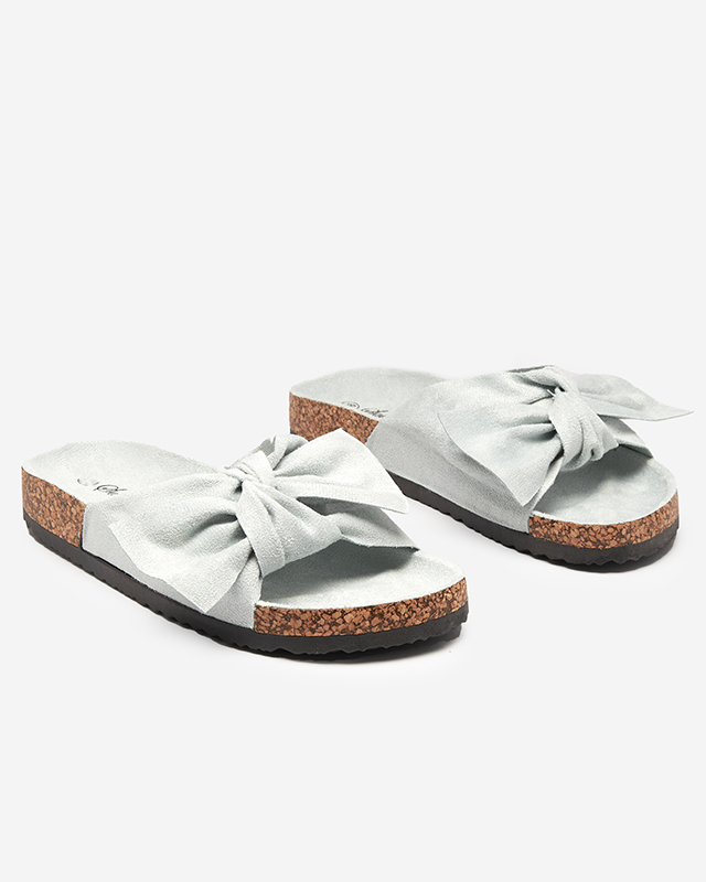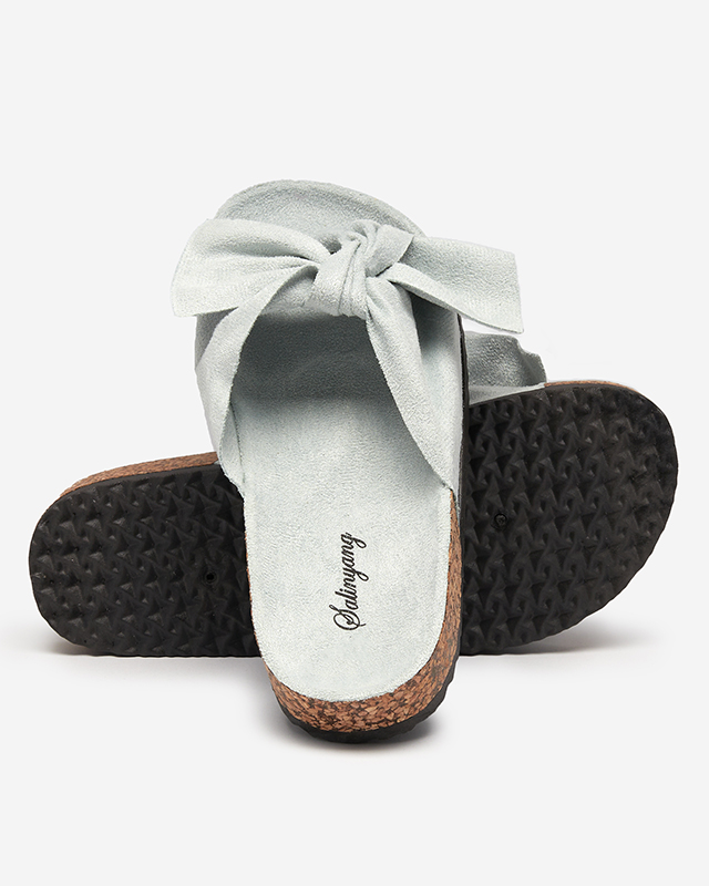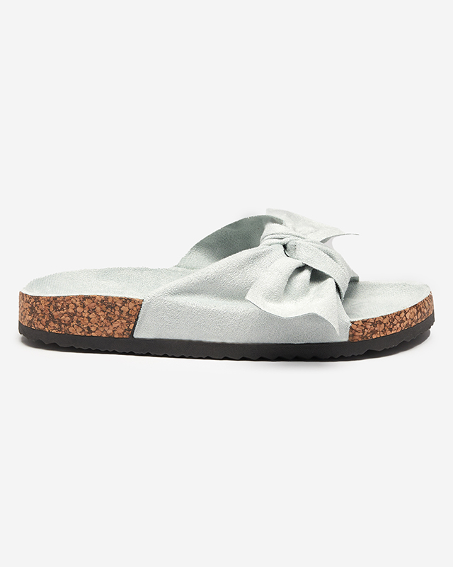 - Kaunid naiste öko-seemisnahast sussid, kaunistatud vibuga. Kummist tald kaunistatud a la kork materjaliga. Täiendab suurepäraselt suvist stiili!