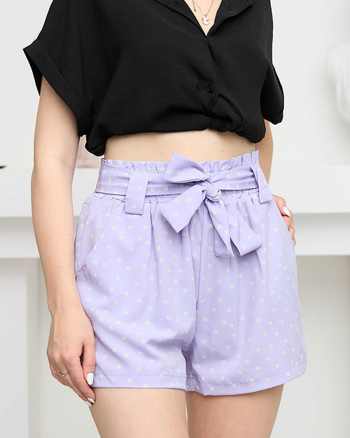 Violetse mustriga naiste tekstiilist lillelised lühikesed püksid - Riietus